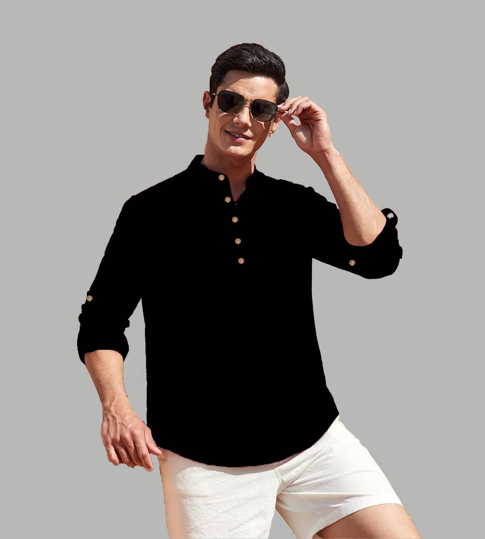 This pure cotton beige short kurta is perfect for men who value style and comfort. Its versatile design makes it ideal for any occasion—festivals, parties, or casual outings. Product Details ?? ????? Gender: Men ?? Pattern: Solid ?? Design Type: Plain ?? Closure: Button ?? Sleeve: Full Sleeve (Roll-Up Option) ?? Waist Rise: Mid-Rise ?? Collar: Mandarin/Chinese ?? Hemline: Curved ?? Fabric: Pure Cotton ?? Product Length: Short ?? Pack of: 1 Material & Care ?? Fabric: 100% Cotton Wash: Suitable for hand wash and machine wash. How to Style ?? Pair it with dark-wash denim or linen trousers for a casual look. Dress it up with a pair of churidar or slim-fit pants for festive occasions. Add leather sandals or loafers and a wristwatch for a classy finish. Roll up the sleeves for a relaxed vibe during daytime events. This short kurta seamlessly blends traditional elegance with modern styling, making it a wardrobe essential for every man! ??