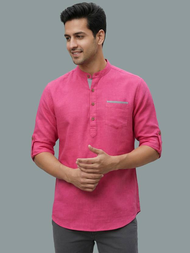 Vida Loca Men Solid Cotton Blend Straight Kurta (Pink)