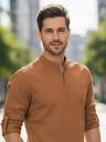 Men Solid Cotton Blend Tunic Kurta (Gold)
