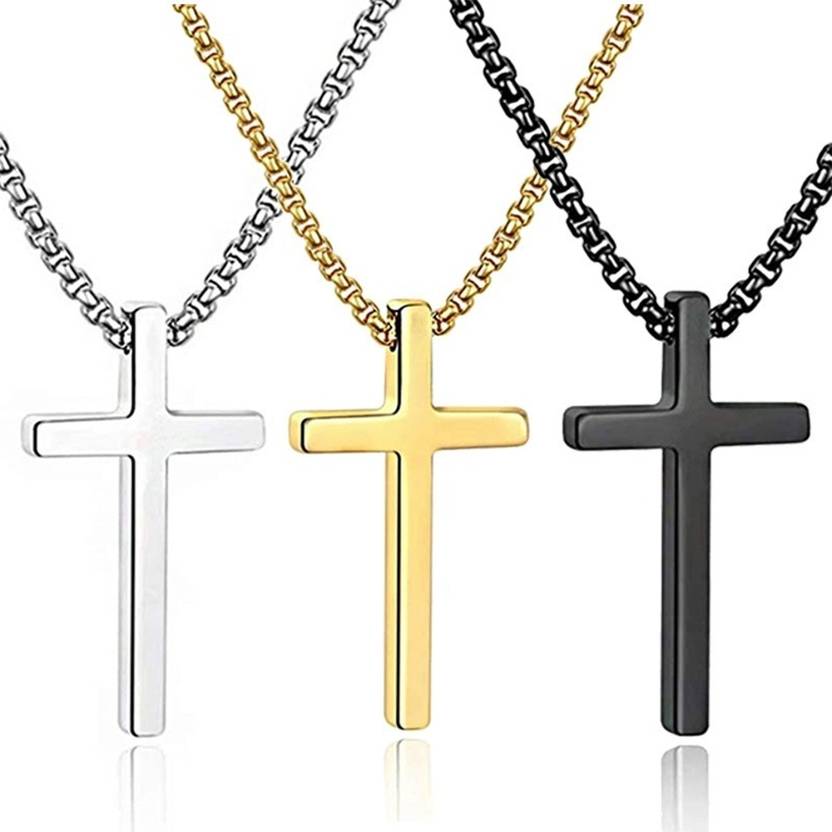 Fashion Necklaces Silver Black Gold Prayer Cross Pendant Chain for Men Women