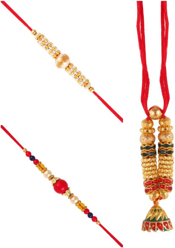 This Vivastri Fashion Jewellery Exclusive Rakhi for Raksha Bandhan Festival. Rakhi is the festival of expressing the feelings of love. Thus what can be better than expressing it your loving brother by bringing a designer rakhi for him this year.Adorn your brother's wrist with this beautiful symbol of affection this Raksha Bhandhan. Tie this elegantly crafted Rakhi from the house of Vighnharta on your brother's wrist on Raksha Bandhan to show your love for him. (Sales Package- 3 Rakhi)