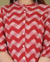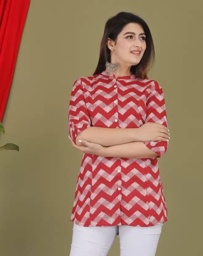 Casual Roll Up Sleeves Printed Women Red, White Top