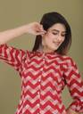 Casual Roll Up Sleeves Printed Women Red Top