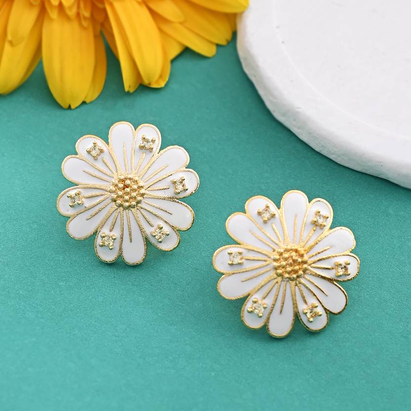 वोयला Flower Fantasy Sapphire White Daisy Earrings Cubic Zirconia Brass Stud Earring