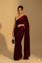 Vraggi सॉलिड/प्लेन बॉलीवुड लाइक्रा ब्लेंड साड़ी (मैरून)