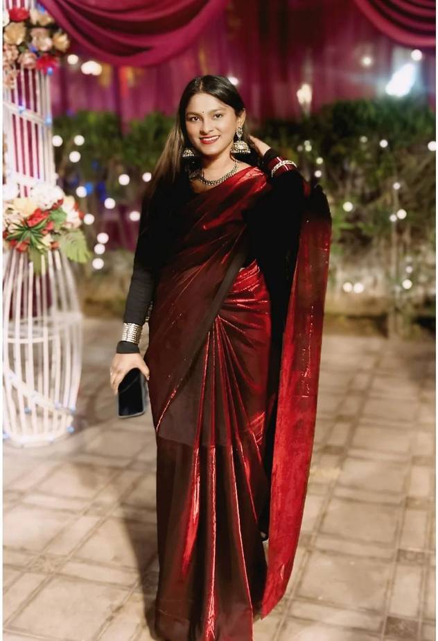 Solid/Plain Bollywood Lycra Saree (Maroon)