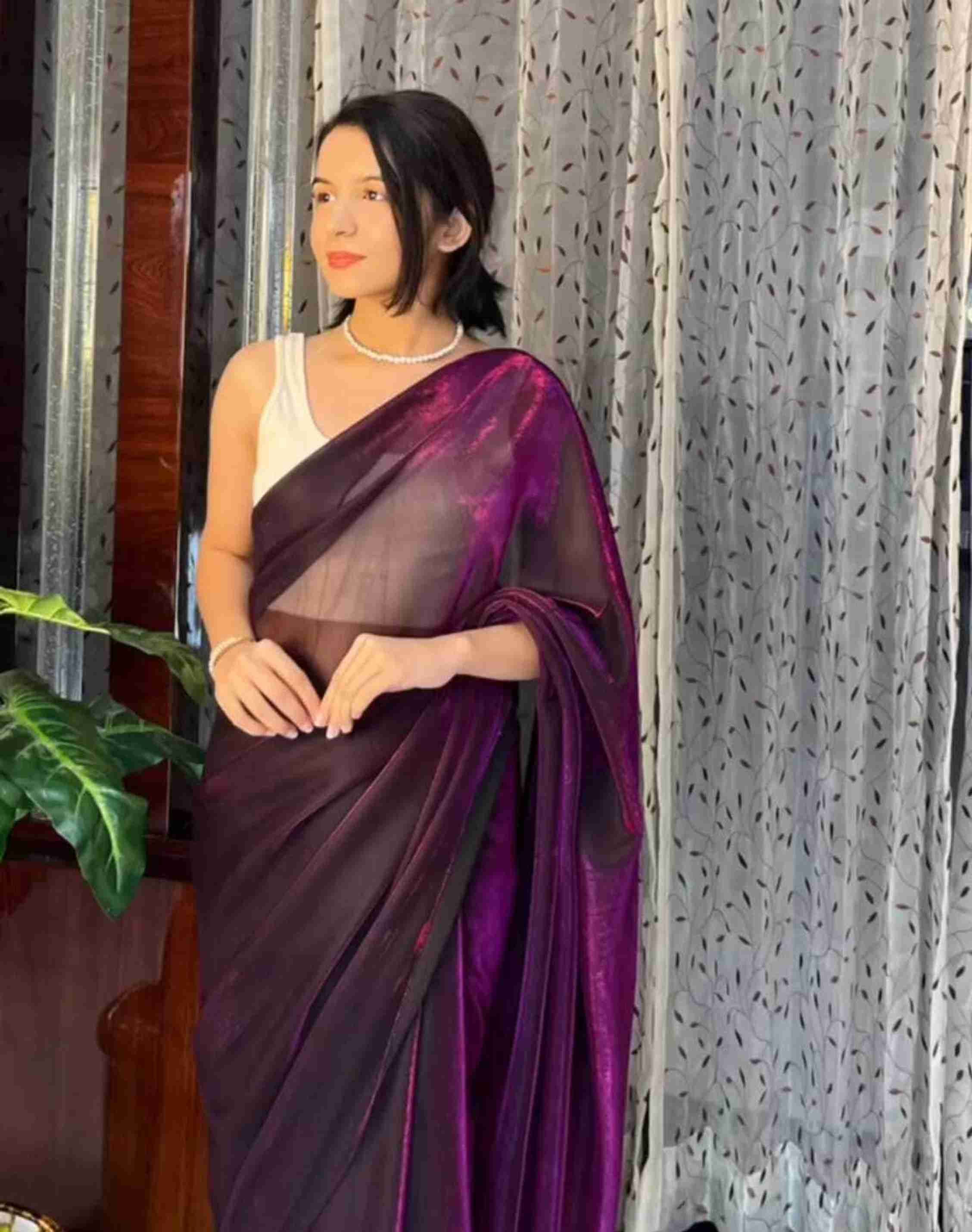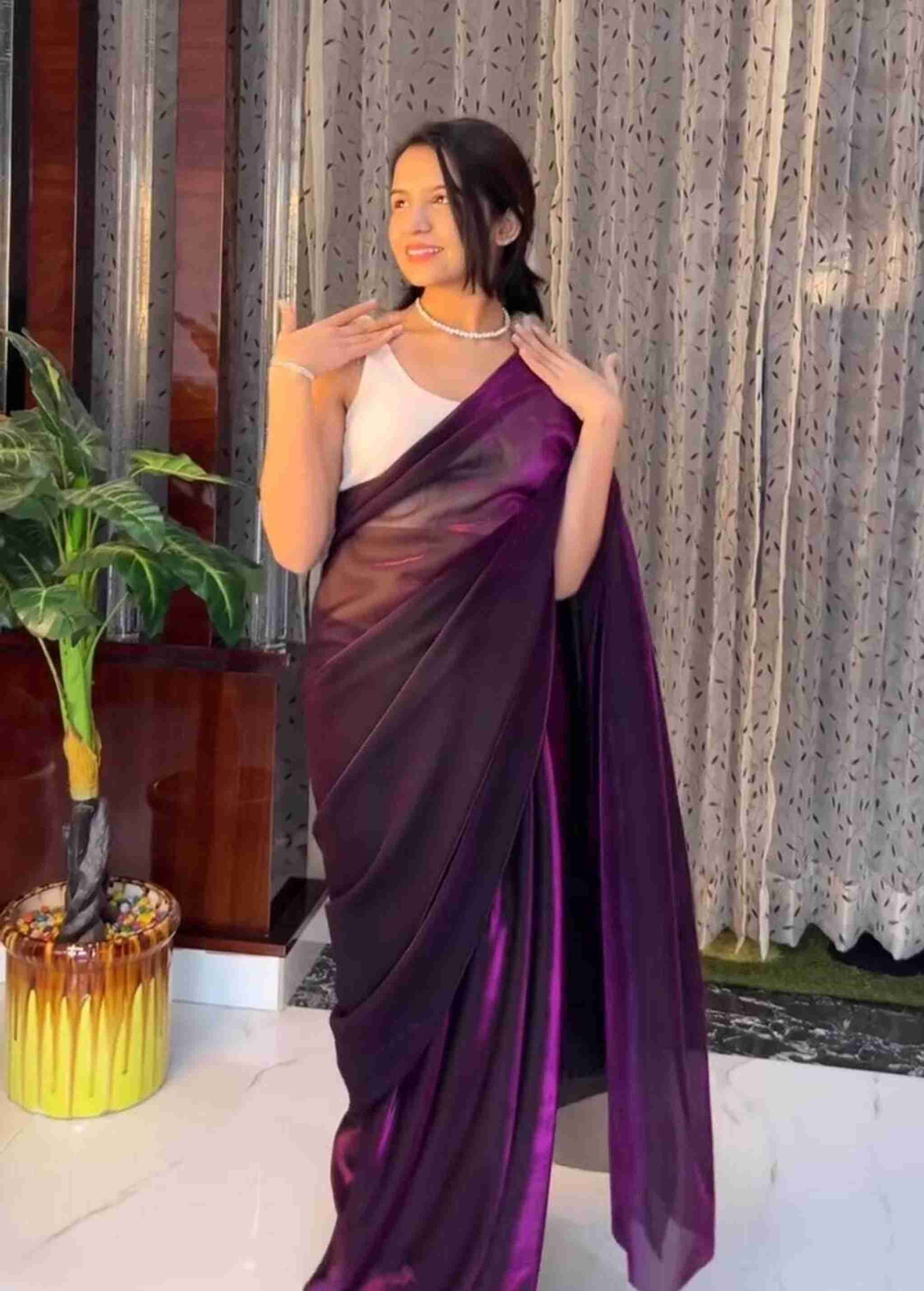 Solid/Plain Bollywood Lycra Saree (Purple)