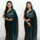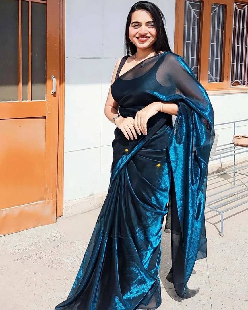 HouseOfCommon Solid/Plain Bollywood Lycra Saree (Blue)