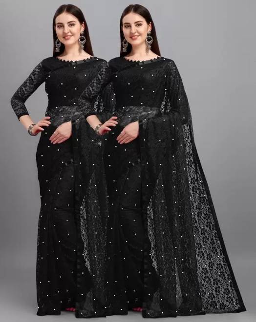 Vragi Self Design Bollywood Net Saree (Black)