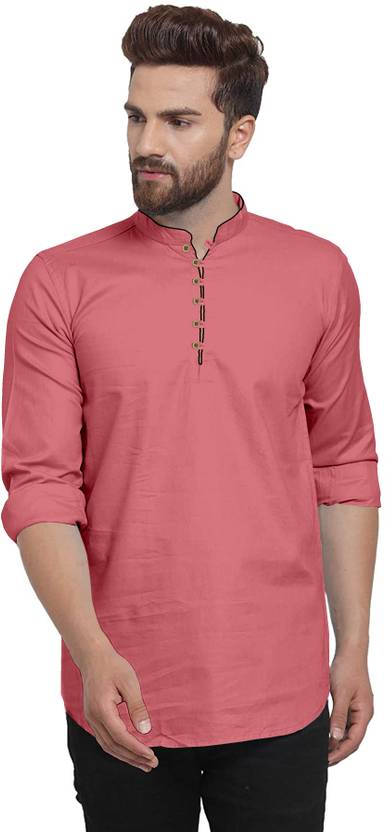 Vटेक्स पुरुषों के लिए सॉलिड स्ट्रेट कुर्ता (गुलाबी)