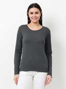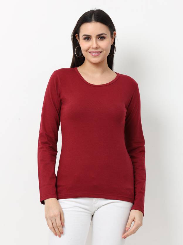 वफा महिलाओं के लिए गोल गला सॉलिड मैरून टी-शर्ट