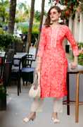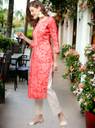 वाउलुक्स महिलाओं के लिए प्रिंटेड स्ट्रेट कुर्ता (गुलाबी)