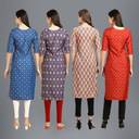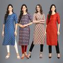 Round-neckline and ¾ length sleeves for a relaxed fit. Features contrast print, lightweight kurta woven in a soft and premium crepe fabric for everyday wear,Classic colour with beautiful Ethnic Motif print .Straight fit cut with side slits and panels render a stylish print. Size- S, M, L, XL, XXL.