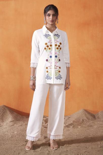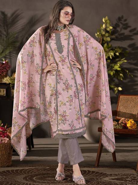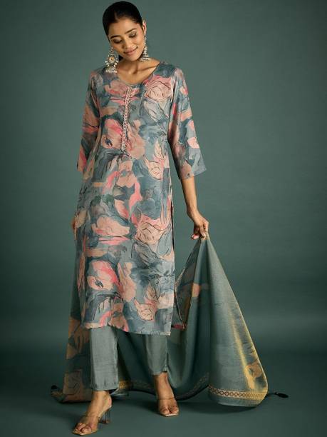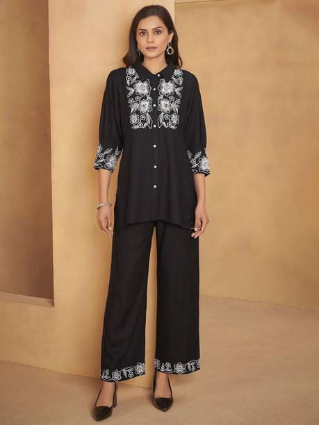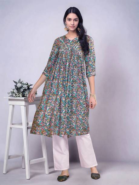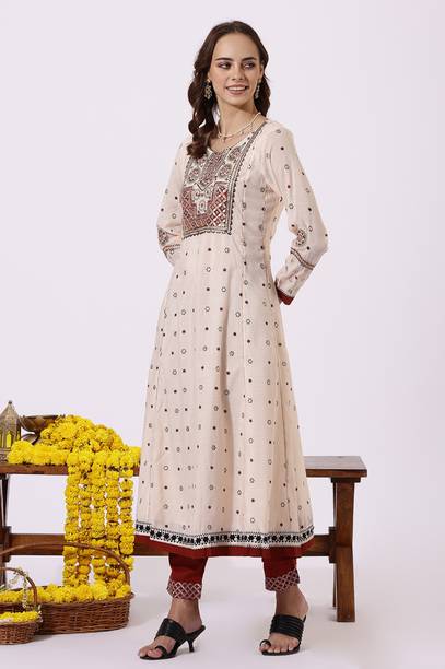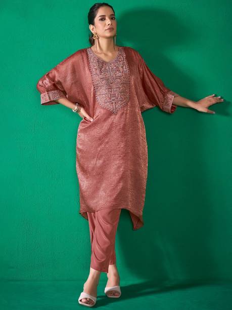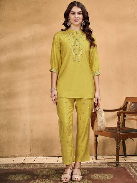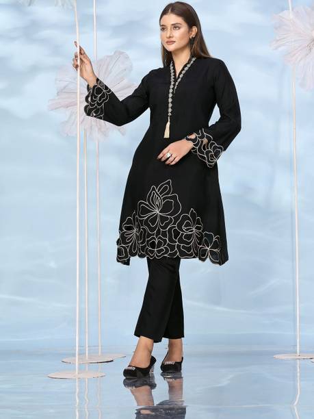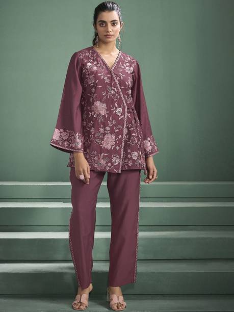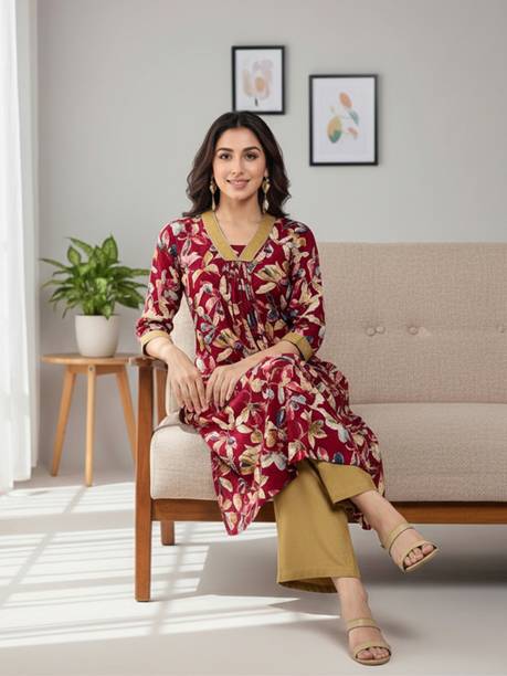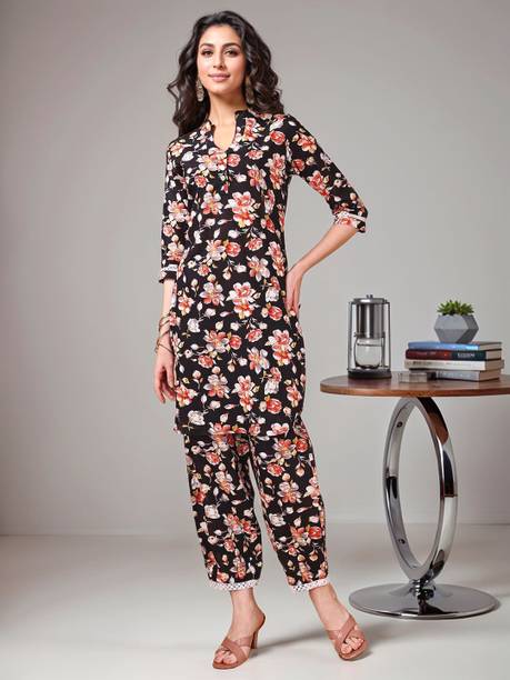 Women Viscose Rayon Kurti Pant Ethnic Jacket Set