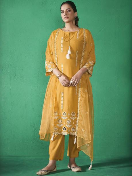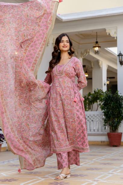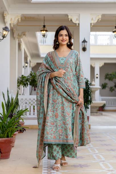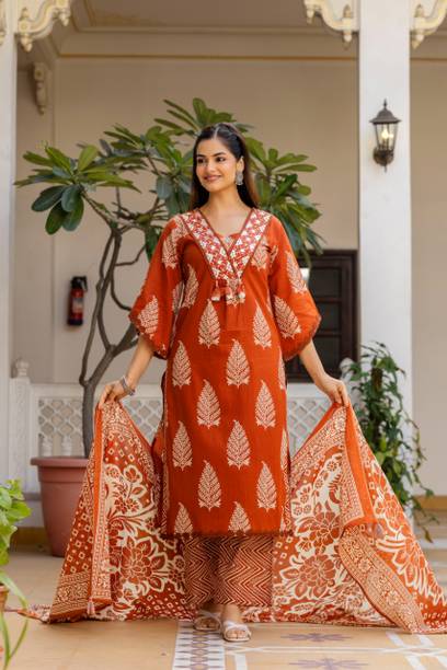 Women Pure Cotton Kurta Palazzo Dupatta Set