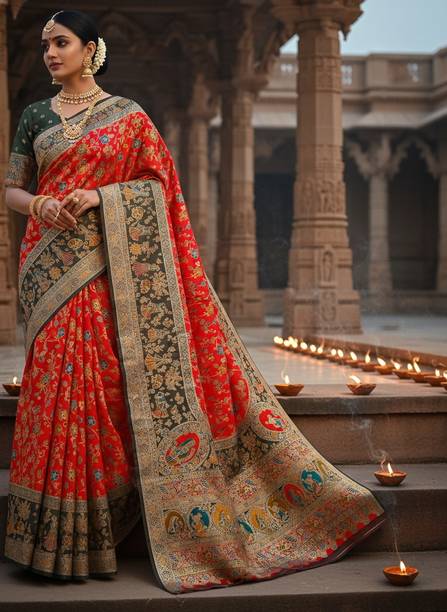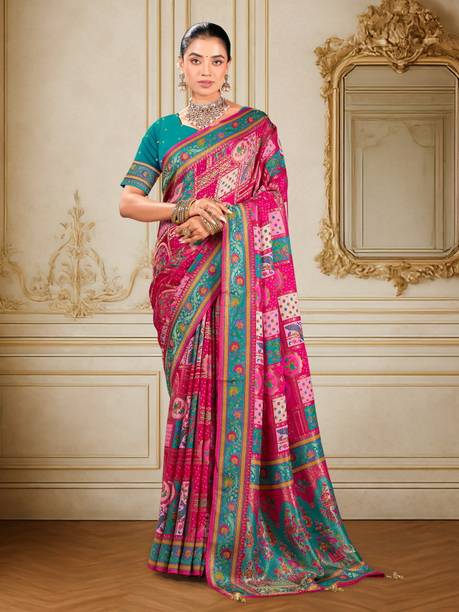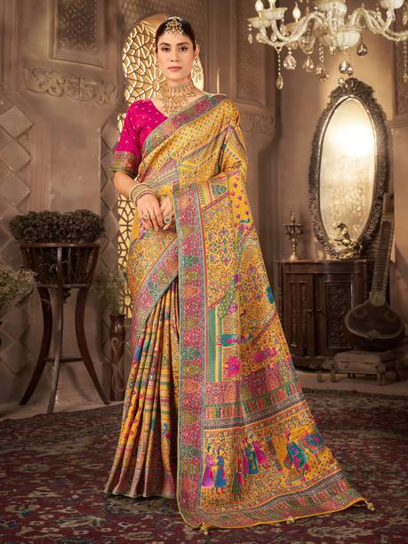 बुना हुआ, डिजिटल प्रिंट मधुबनी प्योर सिल्क, जैकर्ड साड़...