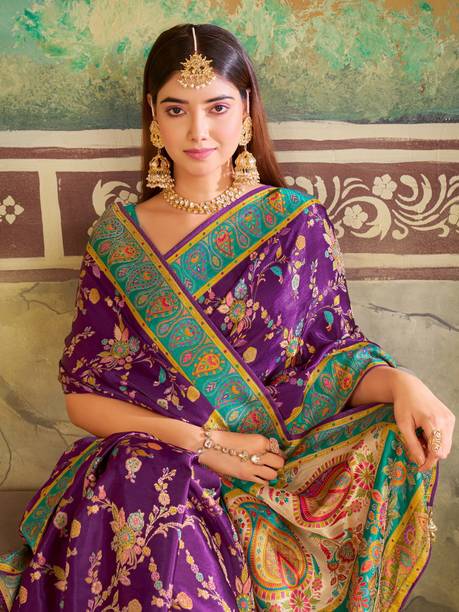 Woven Banarasi Semi-Pashmina, Jacquard Saree