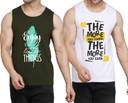 WOOSTRO Pack of 2 Men Printed Scoop Neck Cotton Blend Dark Green, White T-Shirt