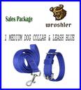 WROSHLER Dog Belt Combo of MEDIUM BLUE Collar with BLUE Dog Leash FOR MEDIUM DOG Dog Collar & Leash (Medium, BLUE)