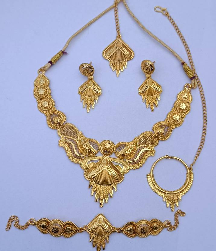 1 Necklace, 1 Pair earring, 1 Maang tikka, 1 Arm band ( 1 baju band ), 1 Nath