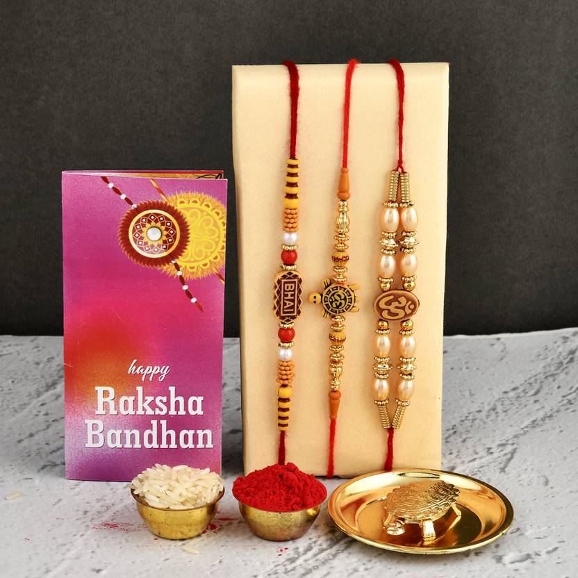 3 Rakhi Set, Lakshmi Charan Paduka Or tortoise for good luck for home