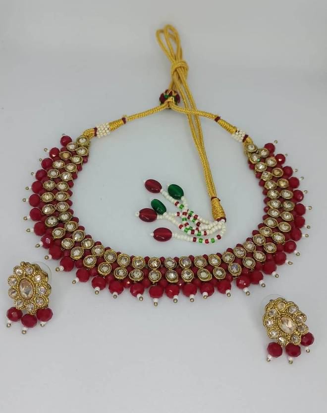 Alloy Maroon Jewel Set (Pack of 1)