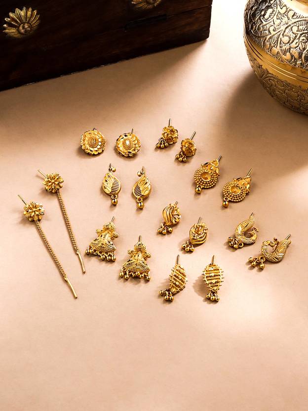 YELLOW CHIMES Gold Pated 9 Pair Combo of Stud Earrings Metal Jhumki Earring