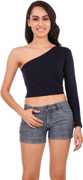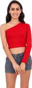 Get a classy look with this Cotton One Shoulder Neck Maroon Colour Full Single Sleeve Crop Top from Be You. Stylish looks and elegant styling make it a must-have in your wardrobe.