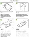 1. स्क्रीन को धीरे से साफ करें और फिर सूखे वाइप से स्क्रीन को पूरी तरह से सुखा लें, स्टेप: स्क्रीन प्रोटेक्टर के पीछे की फिल्म को पील करें, 3 स्टेप: स्क्रीन को सही ढंग से एलाइन करें और स्क्रीन प्रोटेक्टर को चिपकाएँ , 4 स्टेप: धीरे से दबाएँ और हवा के बुलबुले को हटा दें।