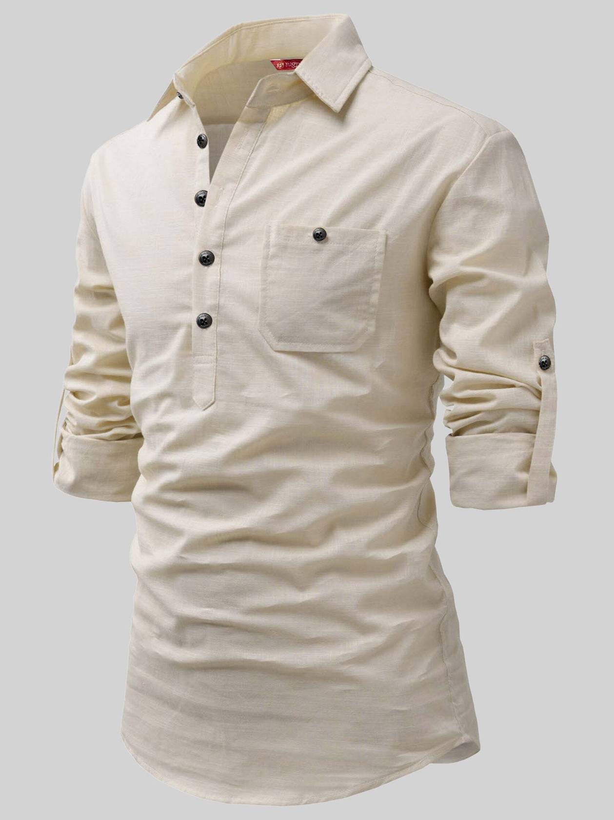 🌟 टॉप फीचर: रोल-अप स्लीव डिज़ाइन फॉर एडजस्टेबल स्टाइलिंग एंड कन्वीनिएन्स, चाइनीज़ कॉलर फॉर ए कंटेम्परेरी टच.