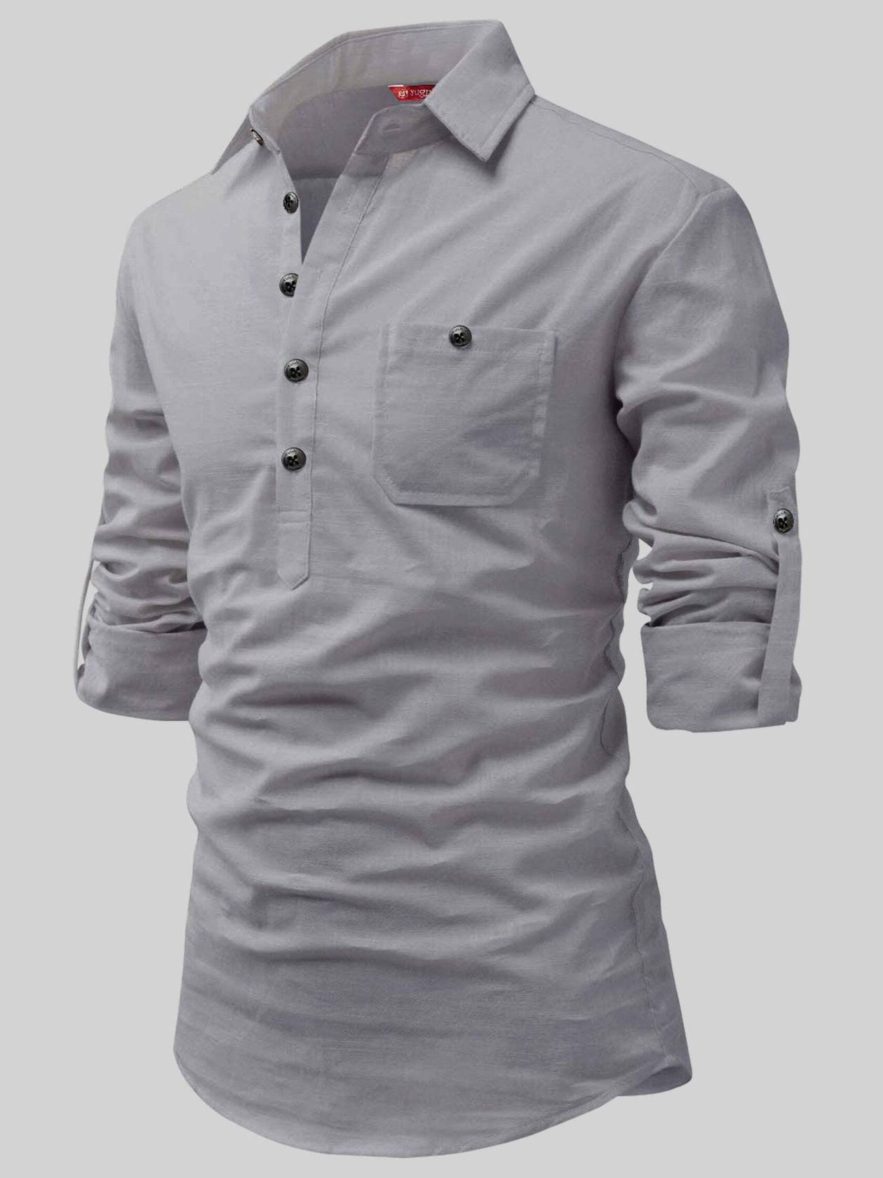 🌟 टॉप फीचर: रोल-अप स्लीव डिज़ाइन फॉर एडजस्टेबल स्टाइलिंग एंड कन्वीनिएन्स, चाइनीज़ कॉलर फॉर ए कंटेम्परेरी टच.