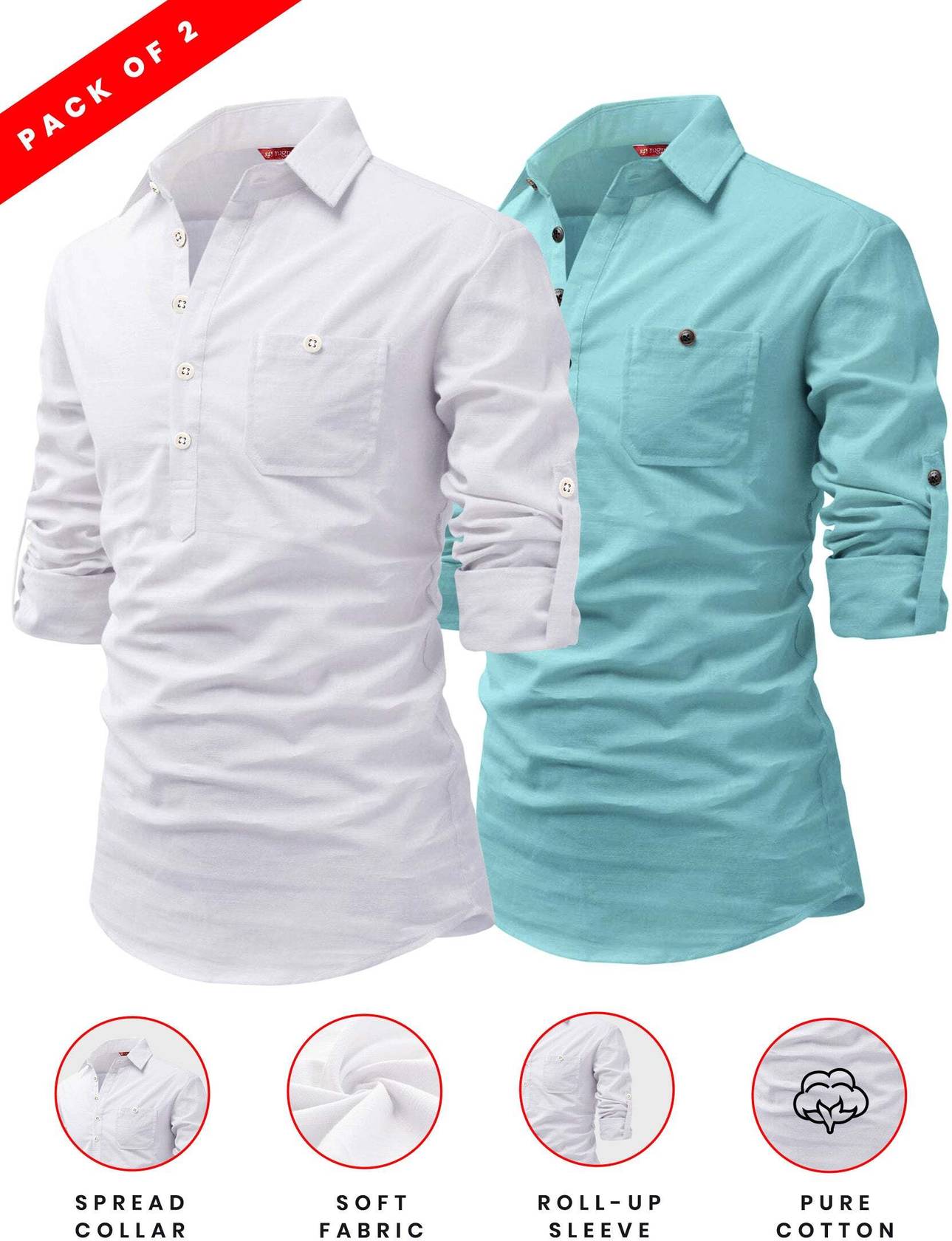 Yugnik┬аPack of 2 Men Solid Pure Cotton A-line Kurta┬а(Light Green, White)