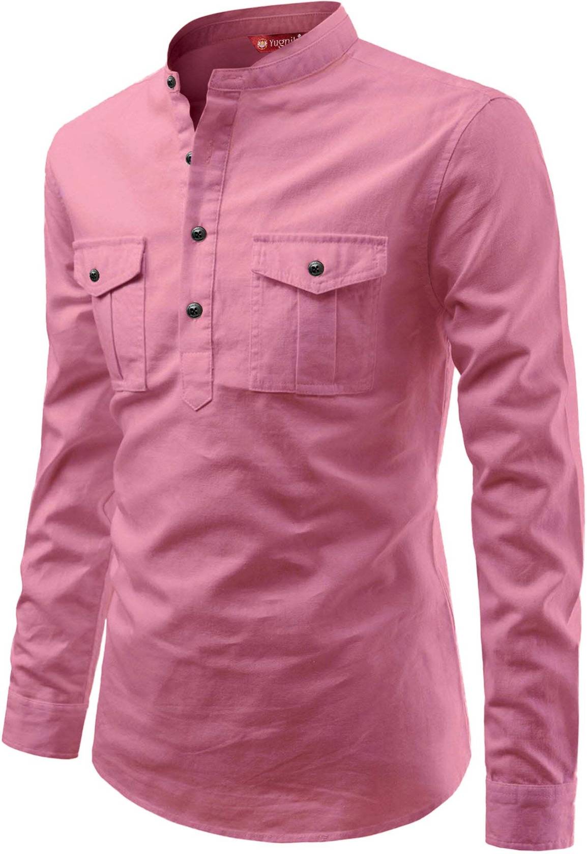 Yugnik Men Solid A-line Kurta (Pink)