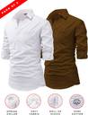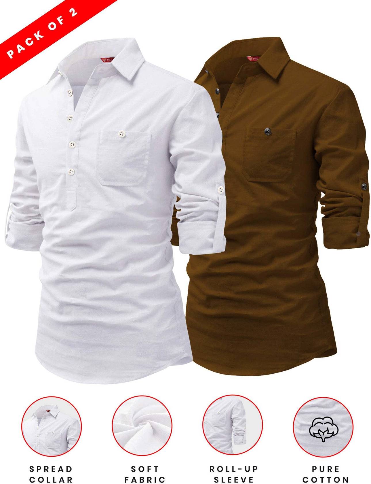 युग्नीक पुरुषों के लिए सॉलिड A-लाइन कुर्ता (सफेद, भूरा)