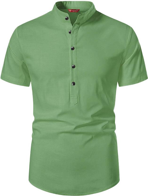 Men Solid Pure Cotton A-line Kurta (Light Green)