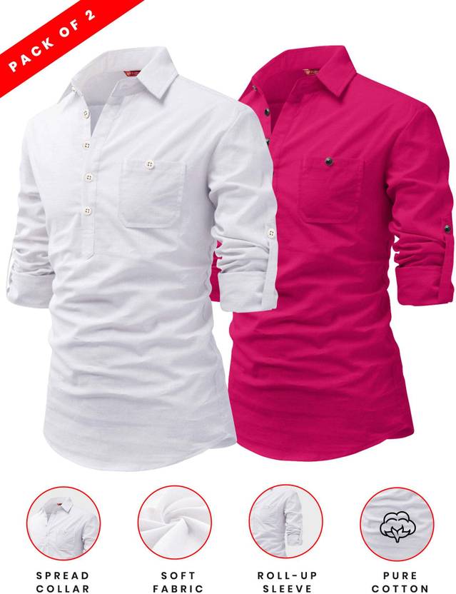 Yugnik Pack of 2 Men Solid Pure Cotton A-line Kurta (Pink)