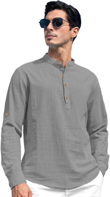 Yugnik Men Solid Pure Cotton Straight Kurta (Grey)