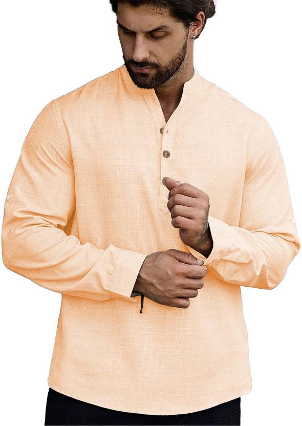 Elevate your style with the Yugnik Men Cotton Blend Slim Fit Full Sleeve Short Kurta. Designed for men who value comfort and sophistication, this elegant beige kurta combines modern tailoring with timeless charm. Perfect for casual outings, festivals, or celebrations, it is crafted to suit every occasion. Key Features: • Fabric & Material: Made from Cotton Blend for breathable comfort and a super-soft feel. • Design: Solid beige color with a plain, minimalist look for versatile styling. • Fit & Closure: Slim fit with button closure for a tailored yet comfortable appearance. • Sleeve Style: Full roll-up sleeves for added flexibility and a trendy touch. • Collar & Hemline: Mandarin/Chinese collar paired with a curved hemline for a modern ethnic vibe. • Length: Short kurta style, perfect for pairing with both traditional and contemporary bottoms. How to Style This Short Kurta: 1. Casual Look: Pair with dark blue or black denim jeans and leather loafers for a laid-back yet polished appearance. 2. Traditional Ensemble: Combine with a pair of white or beige churidar for a festive or ethnic occasion. 3. Smart-Casual: Add chinos or straight-fit trousers, along with minimal accessories like a leather strap watch. 4. Layering Option: Layer it with a Nehru jacket or light ethnic vest for an added touch of sophistication. 5. Footwear: Pair with ethnic mojaris for a traditional look or sneakers for a modern casual outfit. Material & Care: • Material: Cotton Blend for ultimate comfort and durability. • Care Instructions: Suitable for both hand and machine wash. Use mild detergents for longer fabric life and avoid direct sunlight for drying to maintain the color. Why Choose This Kurta? • Versatile styling for casual and festive occasions. • Made from breathable, lightweight cotton for all-day comfort. • Tailored slim fit for a polished and trendy look. With Yugnik’s Short Kurta, redefine your wardrobe with an effortlessly elegant style that merges tradition and modernity.