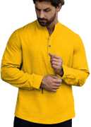 Elevate your style with the Yugnik Men Cotton Blend Slim Fit Full Sleeve Short Kurta. Designed for men who value comfort and sophistication, this elegant beige kurta combines modern tailoring with timeless charm. Perfect for casual outings, festivals, or celebrations, it is crafted to suit every occasion. Key Features: • Fabric & Material: Made from Cotton Blend for breathable comfort and a super-soft feel. • Design: Solid beige color with a plain, minimalist look for versatile styling. • Fit & Closure: Slim fit with button closure for a tailored yet comfortable appearance. • Sleeve Style: Full roll-up sleeves for added flexibility and a trendy touch. • Collar & Hemline: Mandarin/Chinese collar paired with a curved hemline for a modern ethnic vibe. • Length: Short kurta style, perfect for pairing with both traditional and contemporary bottoms. How to Style This Short Kurta: 1. Casual Look: Pair with dark blue or black denim jeans and leather loafers for a laid-back yet polished appearance. 2. Traditional Ensemble: Combine with a pair of white or beige churidar for a festive or ethnic occasion. 3. Smart-Casual: Add chinos or straight-fit trousers, along with minimal accessories like a leather strap watch. 4. Layering Option: Layer it with a Nehru jacket or light ethnic vest for an added touch of sophistication. 5. Footwear: Pair with ethnic mojaris for a traditional look or sneakers for a modern casual outfit. Material & Care: • Material: Cotton Blend for ultimate comfort and durability. • Care Instructions: Suitable for both hand and machine wash. Use mild detergents for longer fabric life and avoid direct sunlight for drying to maintain the color. Why Choose This Kurta? • Versatile styling for casual and festive occasions. • Made from breathable, lightweight cotton for all-day comfort. • Tailored slim fit for a polished and trendy look. With Yugnik’s Short Kurta, redefine your wardrobe with an effortlessly elegant style that merges tradition and modernity.