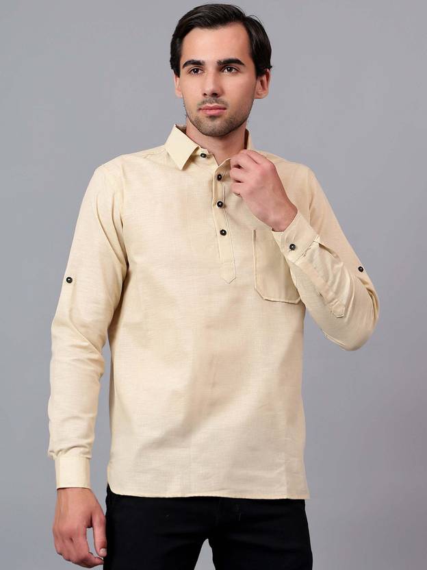 Yugnik Men Solid Pure Cotton Straight Kurta (Beige)