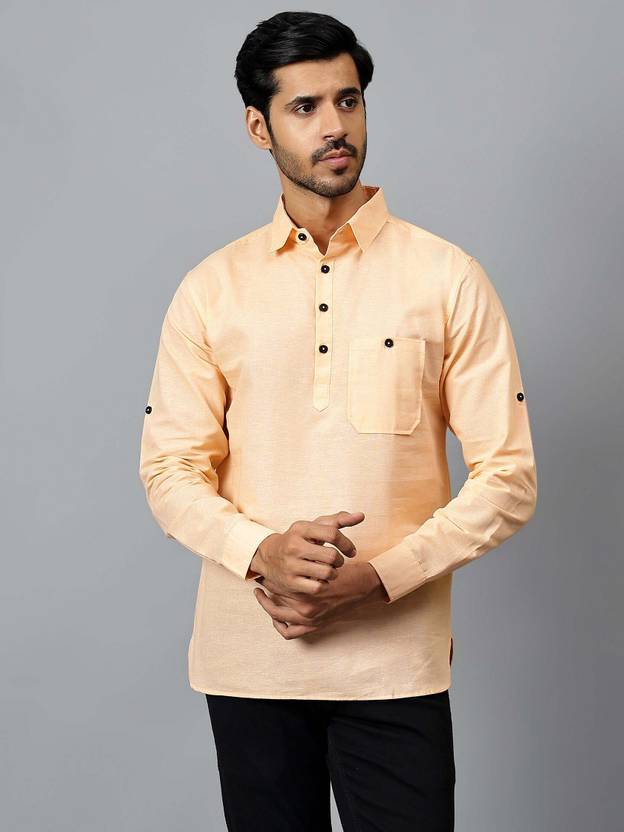 Yugnik Men Solid Pure Cotton Straight Kurta (Orange)