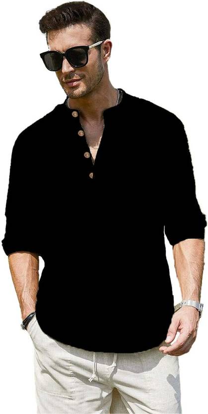 Yugnik Men Solid Pure Cotton Straight Kurta (Black)