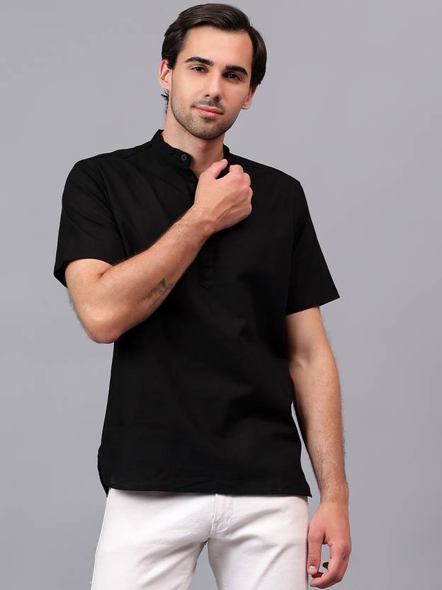 Yugnik Men Solid Pure Cotton Straight Kurta (Black)