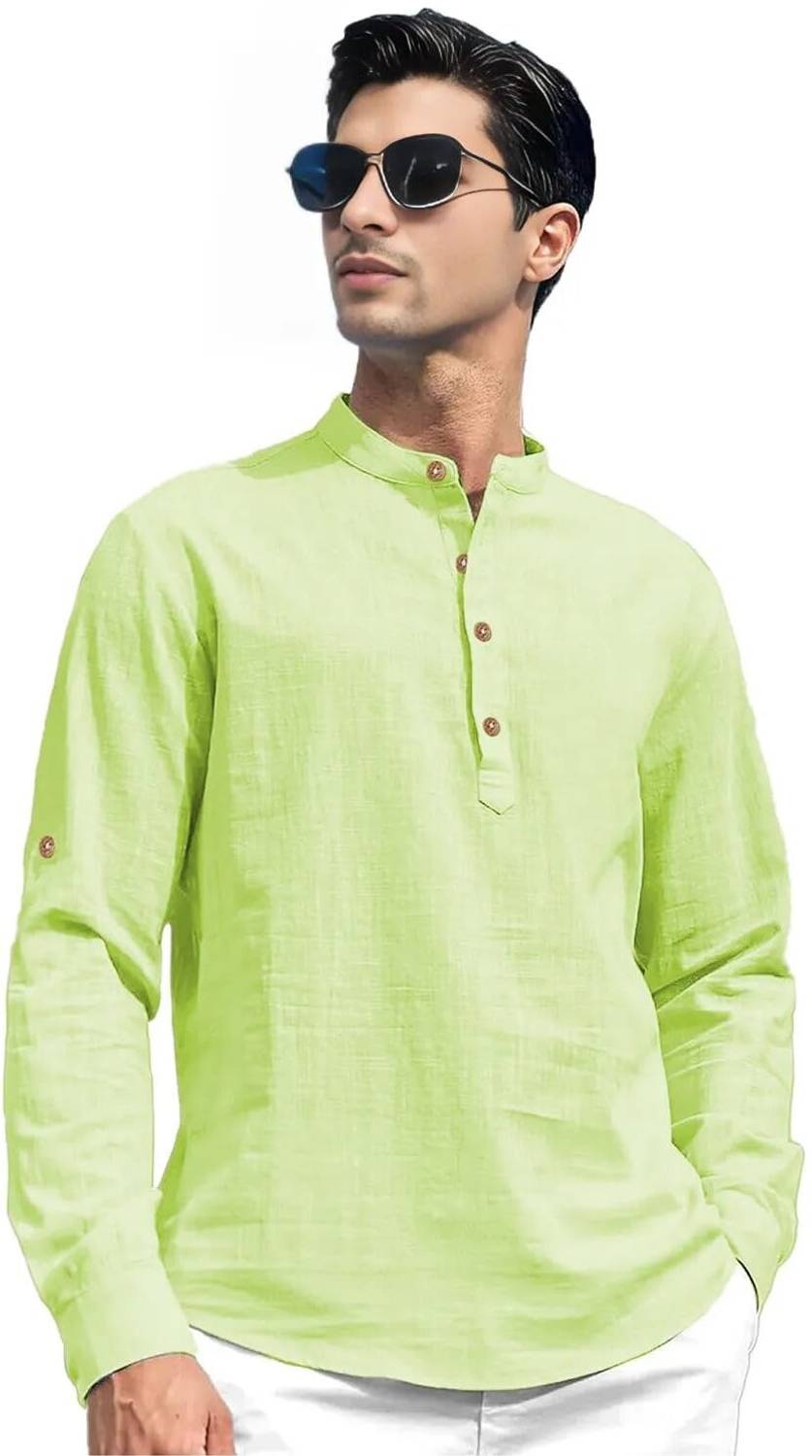 Elevate your style with the YUGNIK Men Cotton Blend Slim Fit Full Sleeve Short Kurta. Designed for men who value comfort and sophistication, this elegant beige kurta combines modern tailoring with timeless charm. Perfect for casual outings, festivals, or celebrations, it is crafted to suit every occasion. Key Features: • Fabric & Material: Made from Cotton Blend for breathable comfort and a super-soft feel. • Design: Solid beige color with a plain, minimalist look for versatile styling. • Fit & Closure: Slim fit with button closure for a tailored yet comfortable appearance. • Sleeve Style: Full roll-up sleeves for added flexibility and a trendy touch. • Collar & Hemline: Mandarin/Chinese collar paired with a curved hemline for a modern ethnic vibe. • Length: Short kurta style, perfect for pairing with both traditional and contemporary bottoms. How to Style This Short Kurta: 1. Casual Look: Pair with dark blue or black denim jeans and leather loafers for a laid-back yet polished appearance. 2. Traditional Ensemble: Combine with a pair of white or beige churidar for a festive or ethnic occasion. 3. Smart-Casual: Add chinos or straight-fit trousers, along with minimal accessories like a leather strap watch. 4. Layering Option: Layer it with a Nehru jacket or light ethnic vest for an added touch of sophistication. 5. Footwear: Pair with ethnic mojaris for a traditional look or sneakers for a modern casual outfit. Material & Care: • Material: Cotton Blend for ultimate comfort and durability. • Care Instructions: Suitable for both hand and machine wash. Use mild detergents for longer fabric life and avoid direct sunlight for drying to maintain the color. Why Choose This Kurta? • Versatile styling for casual and festive occasions. • Made from breathable, lightweight cotton for all-day comfort. • Tailored slim fit for a polished and trendy look. With YUGNIK’s Short Kurta, redefine your wardrobe with an effortlessly elegant style that merges tradition and modernity.