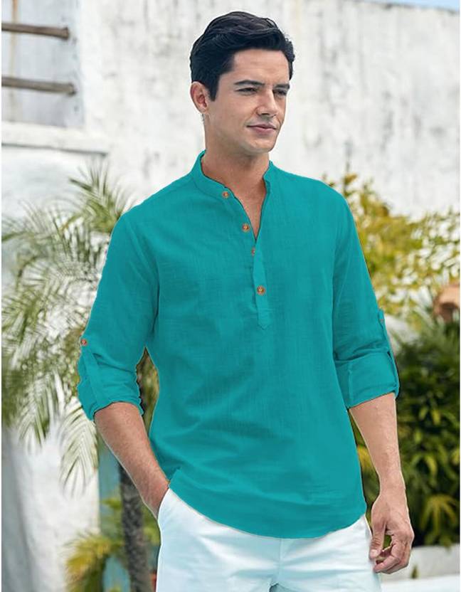 Elevate your style with the Yugnik Men Cotton Blend Slim Fit Full Sleeve Short Kurta. Designed for men who value comfort and sophistication, this elegant beige kurta combines modern tailoring with timeless charm. Perfect for casual outings, festivals, or celebrations, it is crafted to suit every occasion. Key Features: • Fabric & Material: Made from Cotton Blend for breathable comfort and a super-soft feel. • Design: Solid beige color with a plain, minimalist look for versatile styling. • Fit & Closure: Slim fit with button closure for a tailored yet comfortable appearance. • Sleeve Style: Full roll-up sleeves for added flexibility and a trendy touch. • Collar & Hemline: Mandarin/Chinese collar paired with a curved hemline for a modern ethnic vibe. • Length: Short kurta style, perfect for pairing with both traditional and contemporary bottoms. How to Style This Short Kurta: 1. Casual Look: Pair with dark blue or black denim jeans and leather loafers for a laid-back yet polished appearance. 2. Traditional Ensemble: Combine with a pair of white or beige churidar for a festive or ethnic occasion. 3. Smart-Casual: Add chinos or straight-fit trousers, along with minimal accessories like a leather strap watch. 4. Layering Option: Layer it with a Nehru jacket or light ethnic vest for an added touch of sophistication. 5. Footwear: Pair with ethnic mojaris for a traditional look or sneakers for a modern casual outfit. Material & Care: • Material: Cotton Blend for ultimate comfort and durability. • Care Instructions: Suitable for both hand and machine wash. Use mild detergents for longer fabric life and avoid direct sunlight for drying to maintain the color. Why Choose This Kurta? • Versatile styling for casual and festive occasions. • Made from breathable, lightweight cotton for all-day comfort. • Tailored slim fit for a polished and trendy look. With Yugnik’s Short Kurta, redefine your wardrobe with an effortlessly elegant style that merges tradition and modernity.
