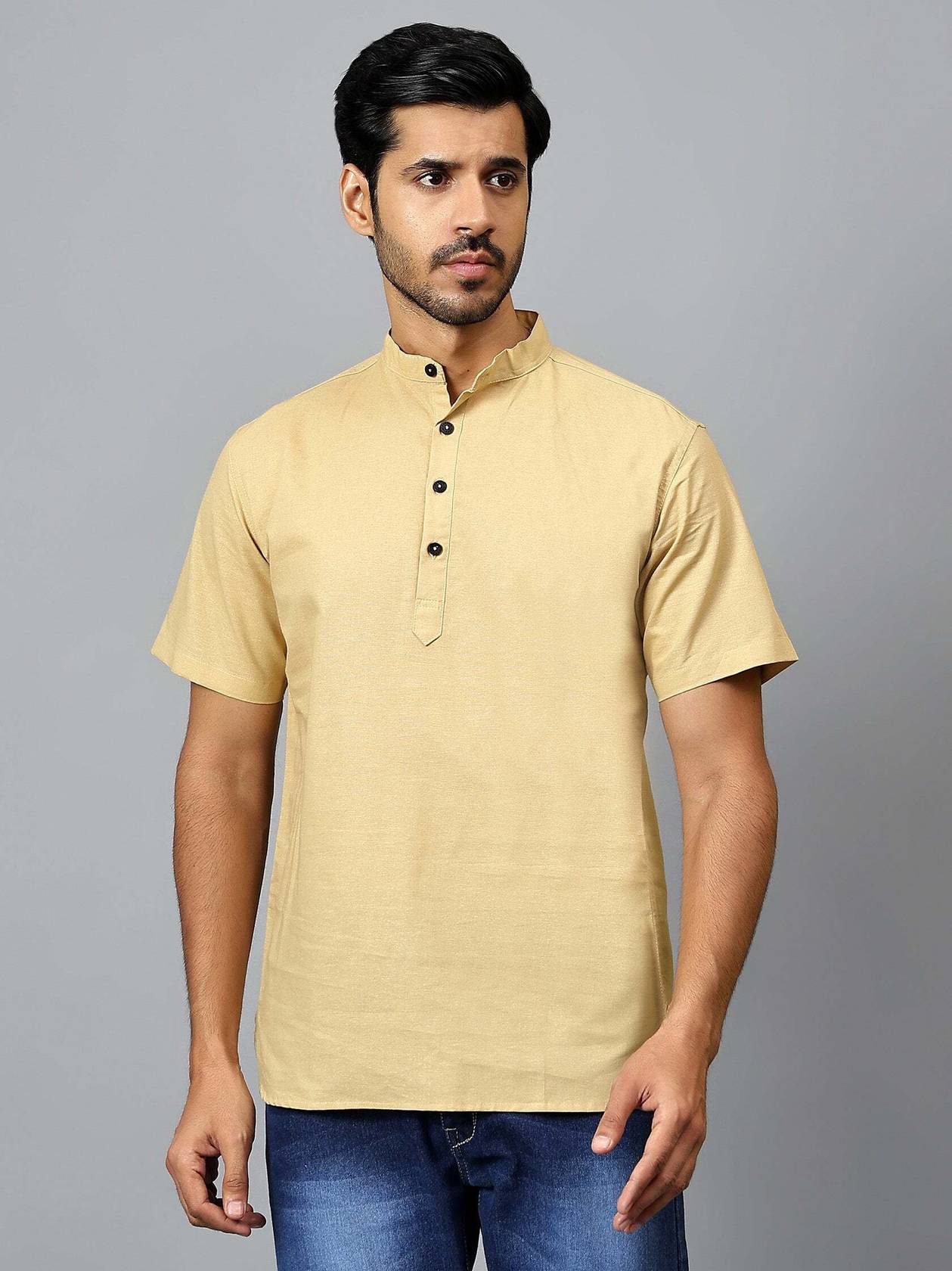 Elevate your style with the Yugnik Men's Half Sleeve Cotton Short Kurta. Suitable for any occasion, festival, or party celebration, this versatile kurta is a wardrobe essential. Product Details: 👕 Gender: Men 🔹 Pattern: Solid 🌟 Design Type: Plain 🎨 Available Colors: Beige, Black, Dark Teal, Golden, Green, Light Green, Grey, Maroon, Navy Blue, Orange, Peach, Pista, Red, Royal Blue, Sky Blue, Turquoise, White, Yellow 🔒 Closure: Button 👔 Sleeve: Full Sleeve ↔️ Waist Rise: Mid-Rise 👘 Collar: Mandarin/Chinese ➰ Hemline: Curved 🌿 Fabric: Cotton 📏 Product Length: Short 📦 Pack of: 1 🧼 Material & Care: Cotton Fabric, Hand and Machine Wash How to Style: Pair this half sleeve short kurta with chinos for a classic look. For a festive touch, add a vibrant stole or dupatta. Complete the ensemble with mojaris or juttis, and accessorize with a sleek bracelet or watch. Whether you’re attending a festival or a casual gathering, this kurta ensures you stand out with elegance and comfort.