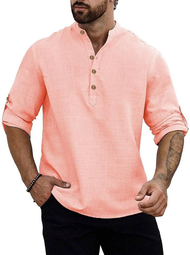 Men Solid Pure Cotton Straight Kurta (Beige)