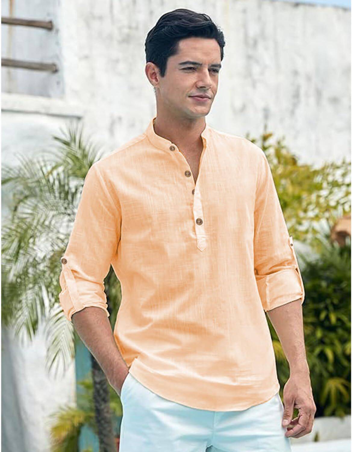 Elevate your style with the Yugnik Men Cotton Blend Slim Fit Full Sleeve Short Kurta. Designed for men who value comfort and sophistication, this elegant beige kurta combines modern tailoring with timeless charm. Perfect for casual outings, festivals, or celebrations, it is crafted to suit every occasion. Key Features: • Fabric & Material: Made from Cotton Blend for breathable comfort and a super-soft feel. • Design: Solid beige color with a plain, minimalist look for versatile styling. • Fit & Closure: Slim fit with button closure for a tailored yet comfortable appearance. • Sleeve Style: Full roll-up sleeves for added flexibility and a trendy touch. • Collar & Hemline: Mandarin/Chinese collar paired with a curved hemline for a modern ethnic vibe. • Length: Short kurta style, perfect for pairing with both traditional and contemporary bottoms. How to Style This Short Kurta: 1. Casual Look: Pair with dark blue or black denim jeans and leather loafers for a laid-back yet polished appearance. 2. Traditional Ensemble: Combine with a pair of white or beige churidar for a festive or ethnic occasion. 3. Smart-Casual: Add chinos or straight-fit trousers, along with minimal accessories like a leather strap watch. 4. Layering Option: Layer it with a Nehru jacket or light ethnic vest for an added touch of sophistication. 5. Footwear: Pair with ethnic mojaris for a traditional look or sneakers for a modern casual outfit. Material & Care: • Material: Cotton Blend for ultimate comfort and durability. • Care Instructions: Suitable for both hand and machine wash. Use mild detergents for longer fabric life and avoid direct sunlight for drying to maintain the color. Why Choose This Kurta? • Versatile styling for casual and festive occasions. • Made from breathable, lightweight cotton for all-day comfort. • Tailored slim fit for a polished and trendy look. With Yugnik’s Short Kurta, redefine your wardrobe with an effortlessly elegant style that merges tradition and modernity.