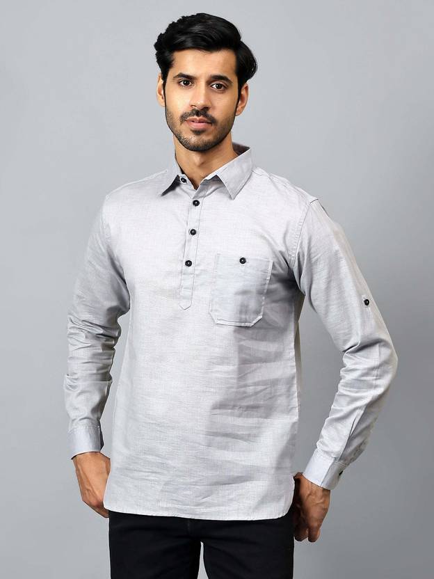 Yugnik Men Solid Pure Cotton Straight Kurta (Grey)