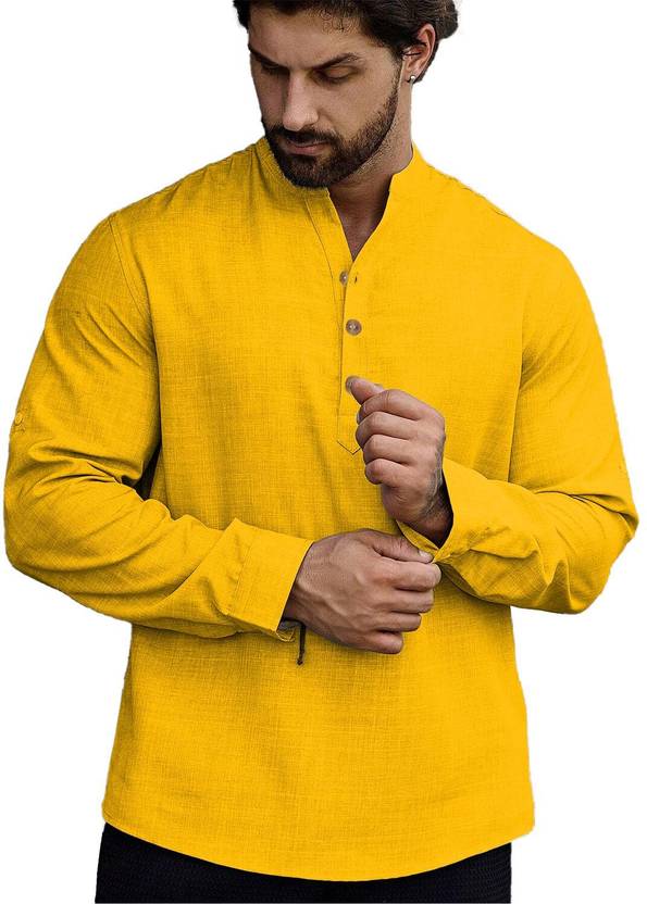 Yugnik Men Solid Pure Cotton Straight Kurta (Yellow)